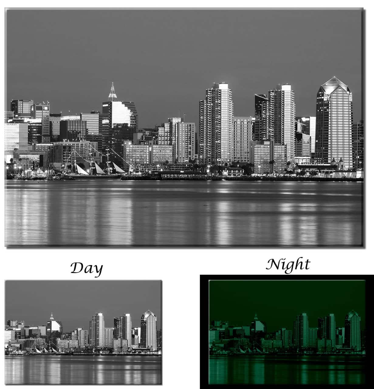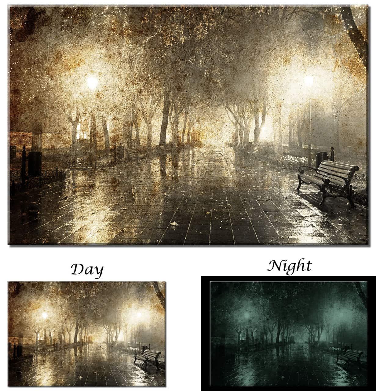 In the presence of light from either the sun or light bulbs, the print can be charged as quickly as in 30 minutes. At night or in the dark, the print will radiate a warm and discreet light. Enjoy this print any time of the day!
